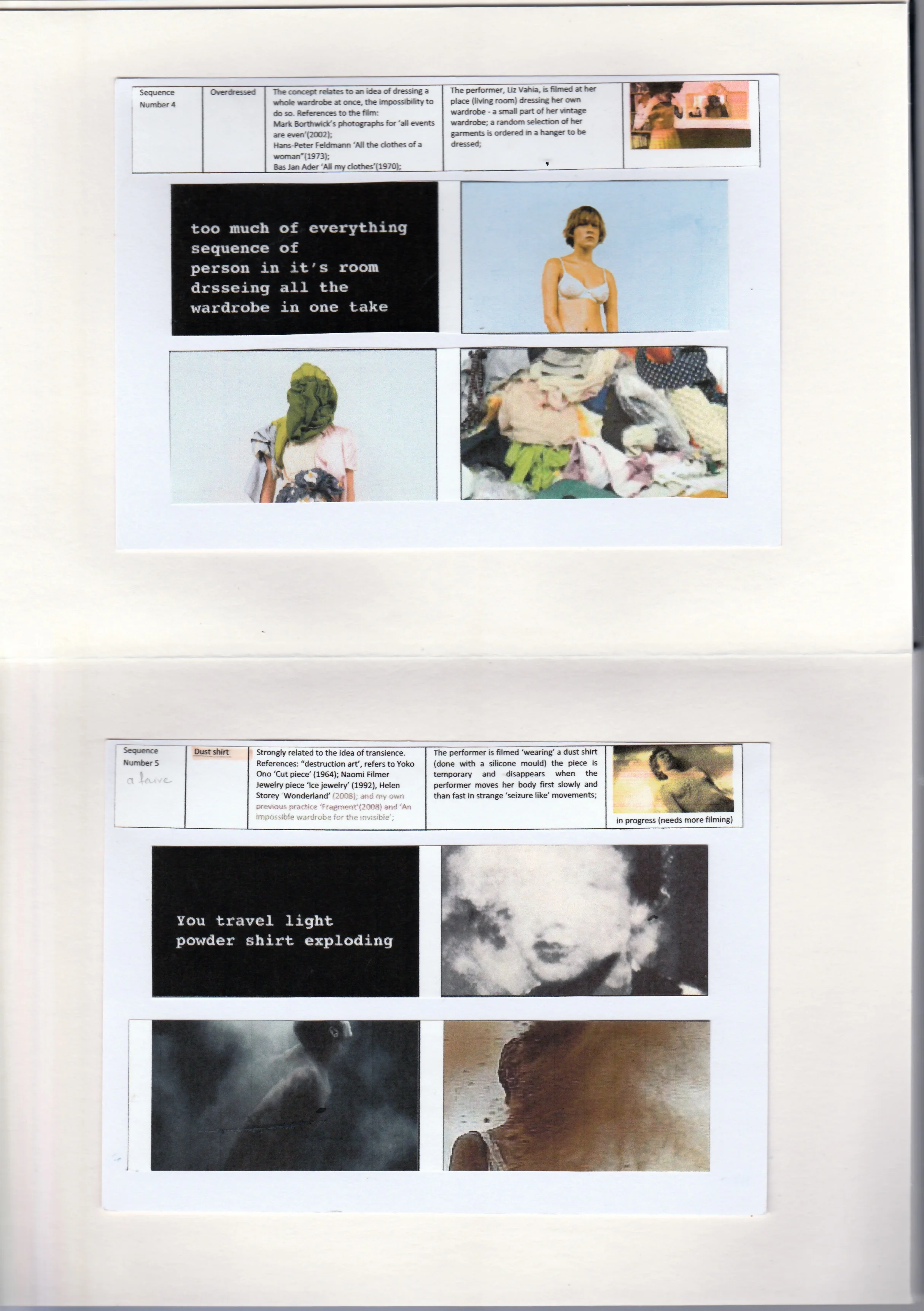 Abstract Going against the traditional productivist nature of fashion design, this practice-based Ph.D. proposes a strategy for critical fashion practices in a research context at the intersection of fashion, fine arts and film methodologies. This interdisciplinary strategy investigates fashion in the expanded field, exploring fashion practice as a form of critical thinking, questioning the fashion system itself: a practice of unmaking, the purpose of this research is to develop a practice-based method of producing an essay film as an artistic reflection critically discussing the problems of the fashion system, providing new insights into the way a fashion designer develops new approaches that can expand the action spaces available for fashion. Since the etymology of the word ‘fashion’ relates it to the Latin factio, meaning ‘making’ or ‘doing,’ to ‘unmake’ fashion carries in itself a paradox; it is both a metaphorical undoing and a methodological one, a practice of fashion resistance by not producing clothing, a deconstruction of fashion in order to understand what it’s made of – like unpicking the seams of a jacket in order to analyse its construction. It de-constructs underlying assumptions regarding a transition to post-productivism, exposing the limitations of current market-driven fashion design processes. Drawing on Rosalind Krauss’s notion of sculpture in the expanded field (1979), as used in the discourse on cinema (Bardon et al., 2015), this research documents the development of experimental fashion films since the 1980s and the interdisciplinary fashion practices that stand at the edge of the fashion discipline. It investigates how thought experiments can steer the creative process towards a critique of fashion, drawing from modernist conceptual and de-materialised art practices towards the development of a conceptual fashion. The research methodology developed within the practice extends the potential of communicating through the essay-film format in order to critique fashion within the contemporary context of heightened concerns about climate change and environmental issues induced by mass-production, fast-fashion, and global fashion distribution and consumption. This is developed through a juxtaposition of allegorical images resembling a thought process: the fashion image is used as a thinking-form for constructing a critique of its own systems. The thesis emphasises the importance of taking a critical stance to fashion due to the lack of self-reflection within current fashion practices, synthesising a body of knowledge to inform practitioners of experimental, critical fashion while revealing complexities within the communication of these concerns, proposing fashion as the representation of a deconstructive thought where dress itself becomes ‘immaterial’.